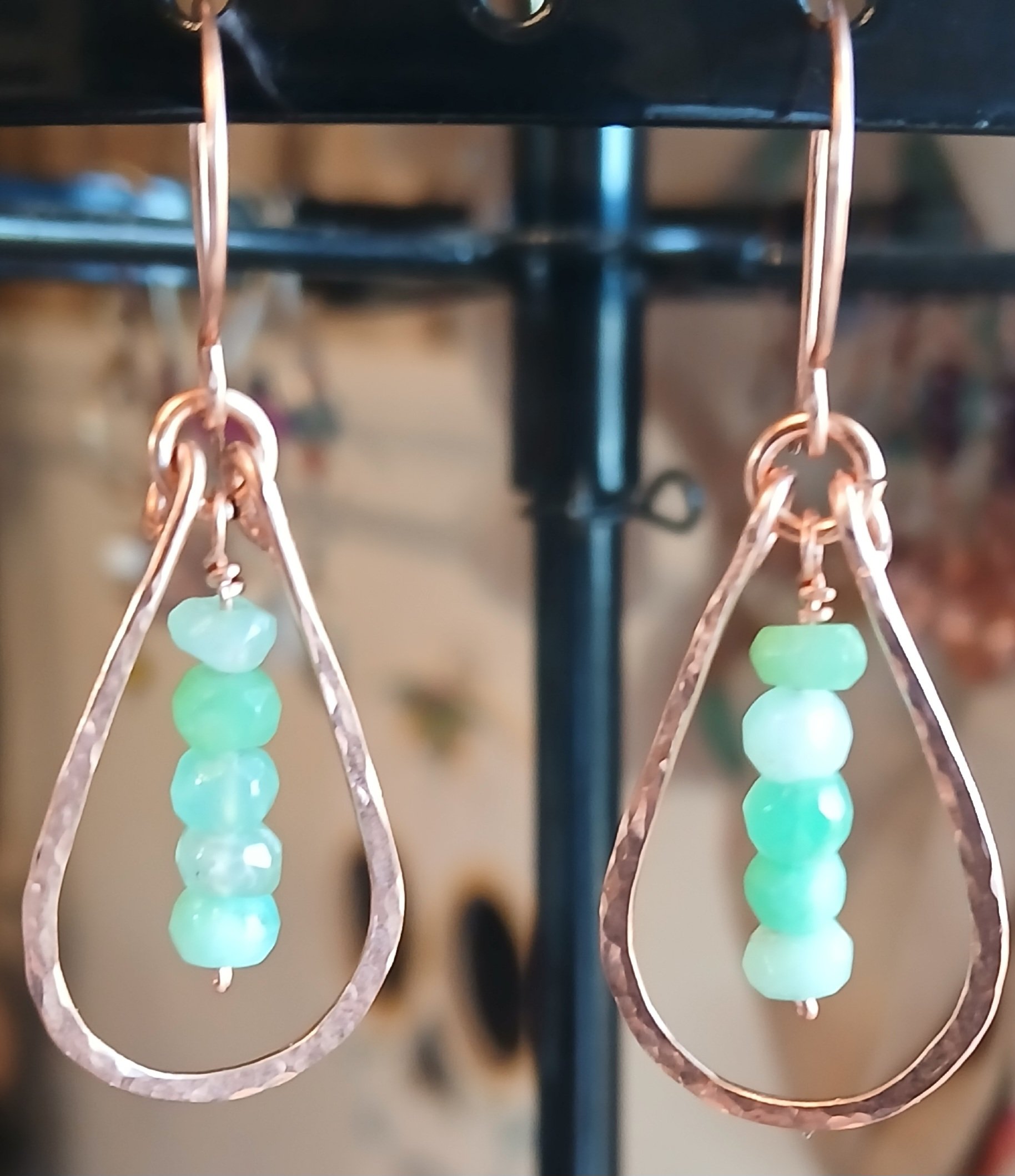 Apple Green Chrysoprase Copper Tear Drop Earrings💚