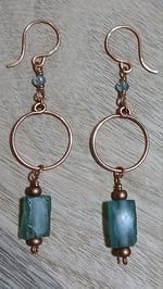 Aqua Ancient Roman Glass Beads with Copper Hoops🩵