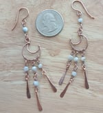 Aquamarine Patinaed Copper Crescent Moon Chandelier Earrings🩵