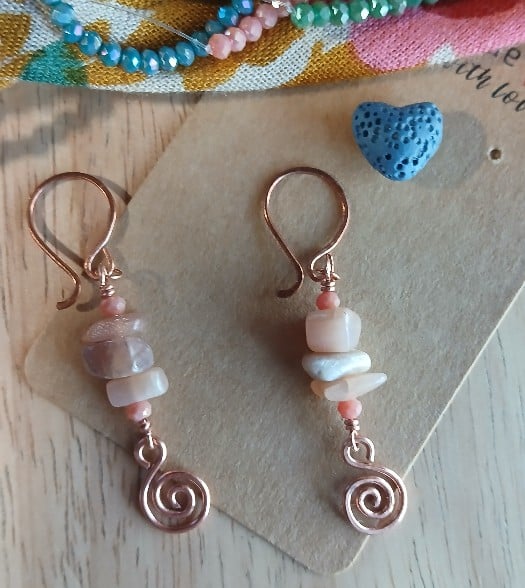 Sunstone Copper Spiral Copper Earrings🌞
